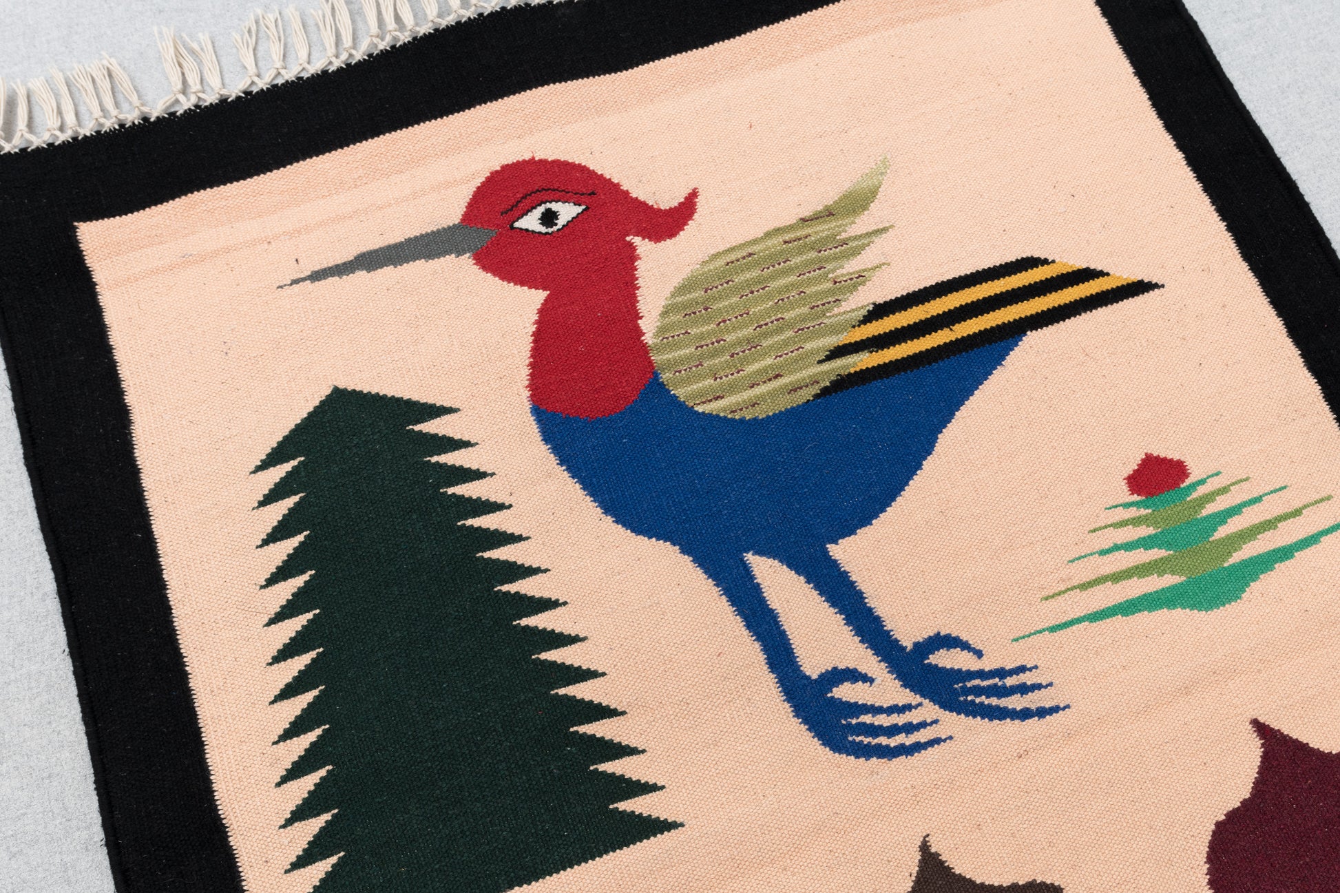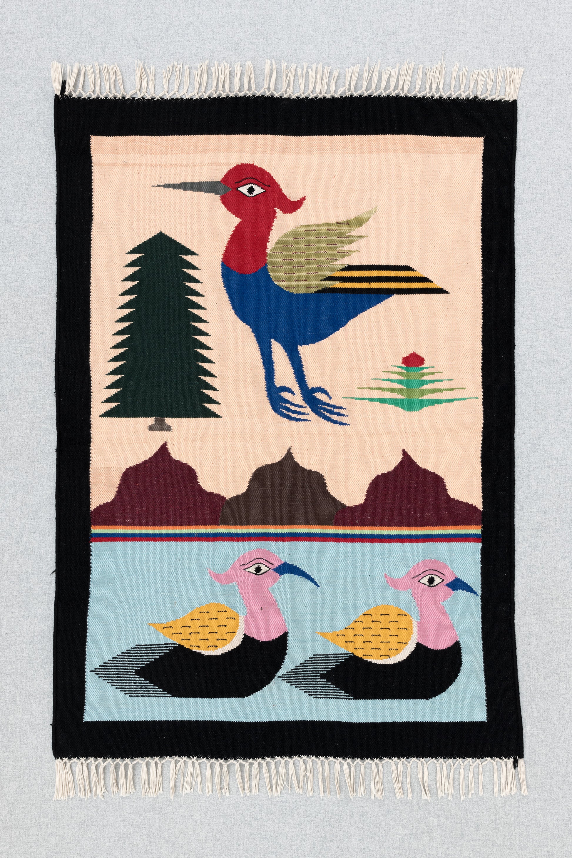 Handwoven Pictorial Rug [pine tree, 3 birds]